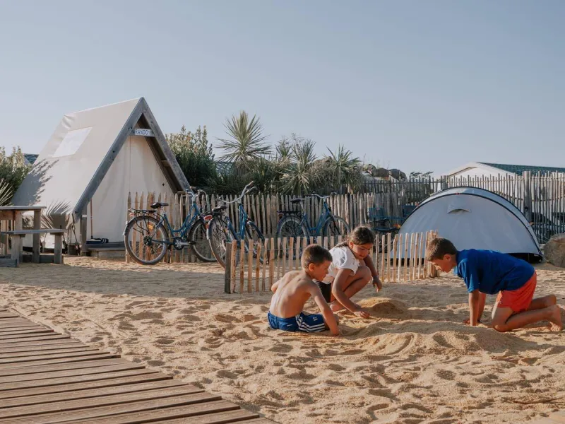 Facing the ocean, between beach and forest, La Dune des Sables campsite invites you to spend your holidays with your feet in the sand, in an exceptional natural setting at La Chaume, Les Sables d'Olonne.Just 100 m from Aubraie beach and 500 m from Paracou beach, enjoy swimming, sea walks and water sports in a friendly, relaxed atmosphere.