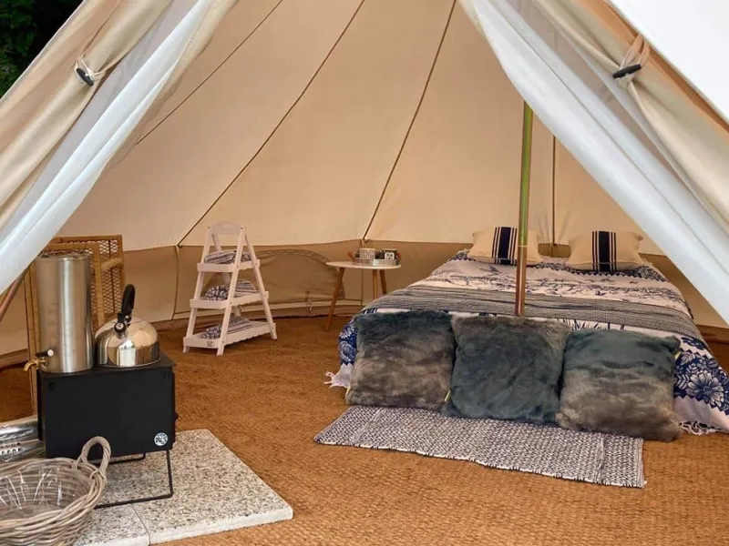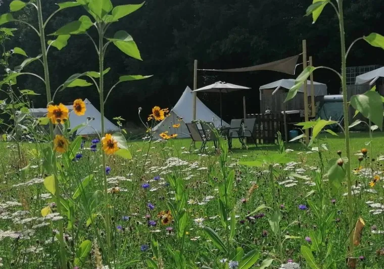 Avec seulement 6 tentes de luxe en toile, la prairie de fleurs sauvages entourée de forêt est un endroit idéal pour se détendre et se ressourcer. Nagez tranquillement dans l'éco-piscine de 11 x 5 m, détendez-vous dans un hamac, faites une pause dans notre chapiteau de détente ou détendez-vous autour d'un feu de camp sous le ciel étoilé.Pour les aventuriers, les lacs de Haute Charente sont à seulement 5 minutes en voiture ou 25 minutes à vélo pour les sports nautiques, les baignades sauvages, les plages et les bars. Des parcs d'aventure au karting, des châteaux aux thermes romains, il y a tant à découvrir dans cette région préservée.