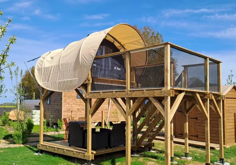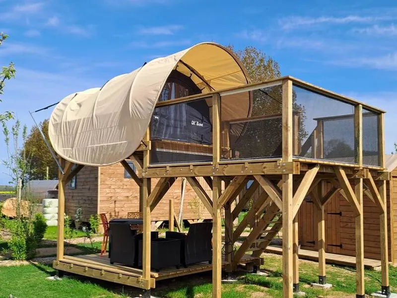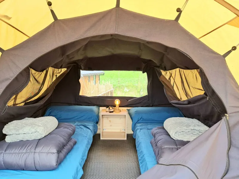 Our ready-to-camp tents offer a cosy cocoon with box spring, mattress, bed linen, towels, private bathroom and kitchenette. On-site: local produce, ice creams, drinks, games, books, washing machine, tumble dryer. The ideal place to unwind, recharge your batteries and enjoy the peaceful, unspoilt atmosphere of the Côte d'Albâtre.