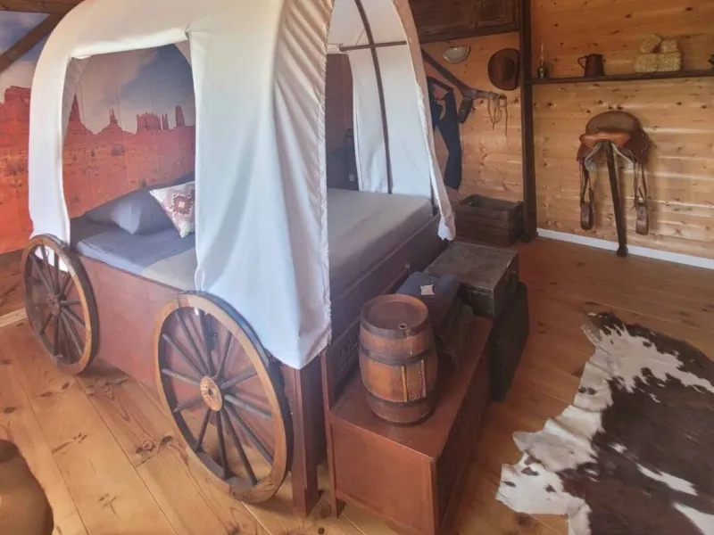 Unusual accommodations with a western theme, outdoor activities and a small restaurant.Localisation