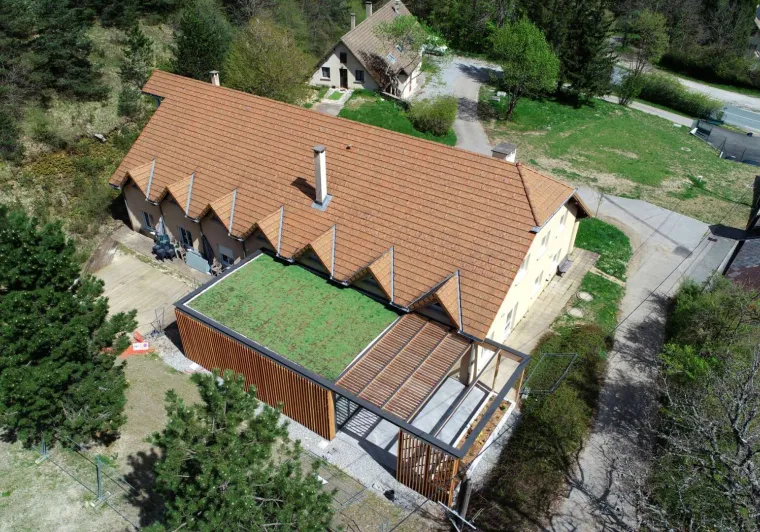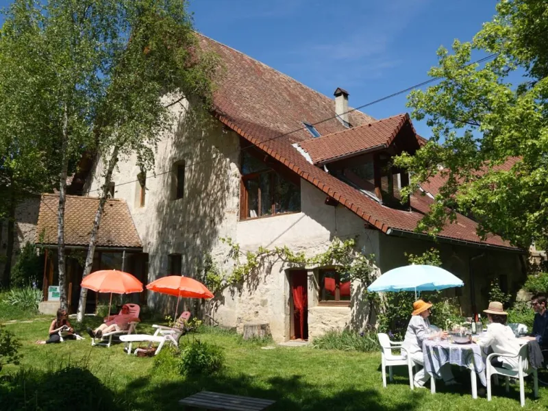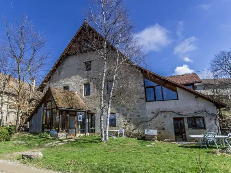 lounge, library, fireplace, kitchen, Ch.1 (1bed 2 pers. shower-wc). On 1st Ch.2 (2 bunk beds, 1 double bed, shower room-wc), Ch.3 (1 double bed, 1 crib, shower room, landing WC) on 2nd Ch.4 & Ch.5 (1 double bed, 2 bunk beds, shower room-wc). Garden and children's play area Ideal for exploring the Trièves, Vercors and Obiou Massif, for family reunions, weekends, training courses or seminars. Meals available on site. Close to organic market garden, Terre Vivante ecological center, Lake Monteynard, Himalayan footbridges, climbing routes, paragliding area.