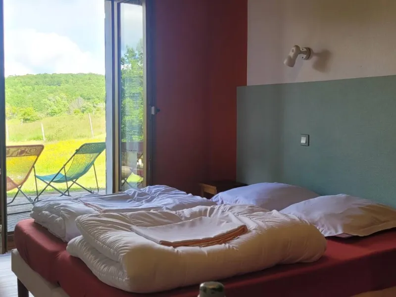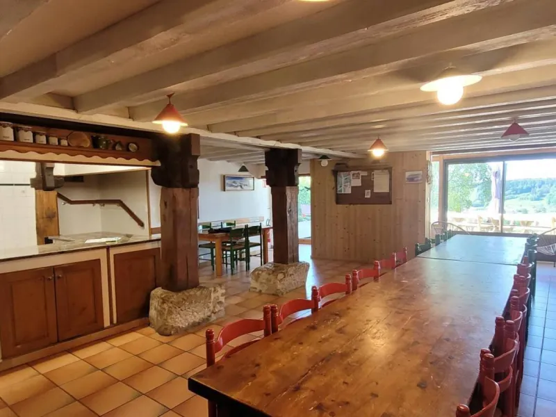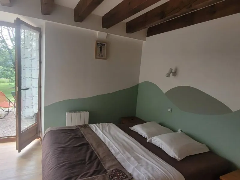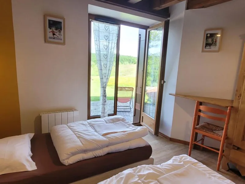 This old 17th century farmhouse, completely renovated, welcomes you with a large common room, dining room, open kitchen (semi-professional equipped), living room and library corner with a fireplace. Perfect for family game nights. The gîte also has a veranda which opens onto a large south-facing terrace.On the first floor, the sleeping arrangements are divided into 4 bedrooms with bathrooms. A "spring" room with 5 full-size beds, a "summer" room with a double bed, an "autumn" room with 6 bunk beds and a "winter" room with 4 full-size beds.