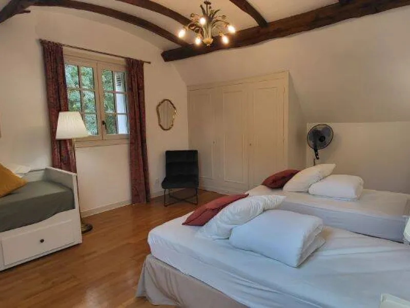 This old water mill is a real haven of peace, ideal for your reunion with family or friends near Amboise. It is impossible to remain insensitive to the charm of this old residence, a place where water, green nature, the covered swimming pool, the fitness room will satisfy the most demanding. Everything has been thought out and organized for optimum comfort, with its 7 bedrooms and 4 bathrooms, top-of-the-range bedding, children's play area, and a large living room. Close to the greatest castles of the Loire Valley (Amboise, Chenonceau, Blois, Chambord) and the Beauval Zooparc, the site (LPO refuge) offers a wonderful setting for fishermen (fishing gîte). On site, another gîte for 6 people can be rented simultaneously for a total capacity of 21 people.Localisation