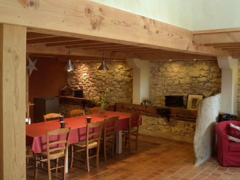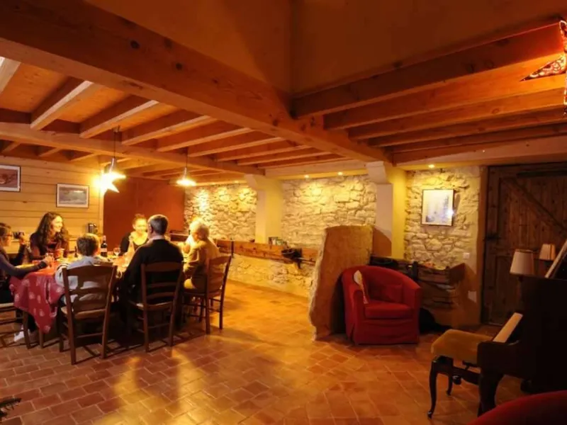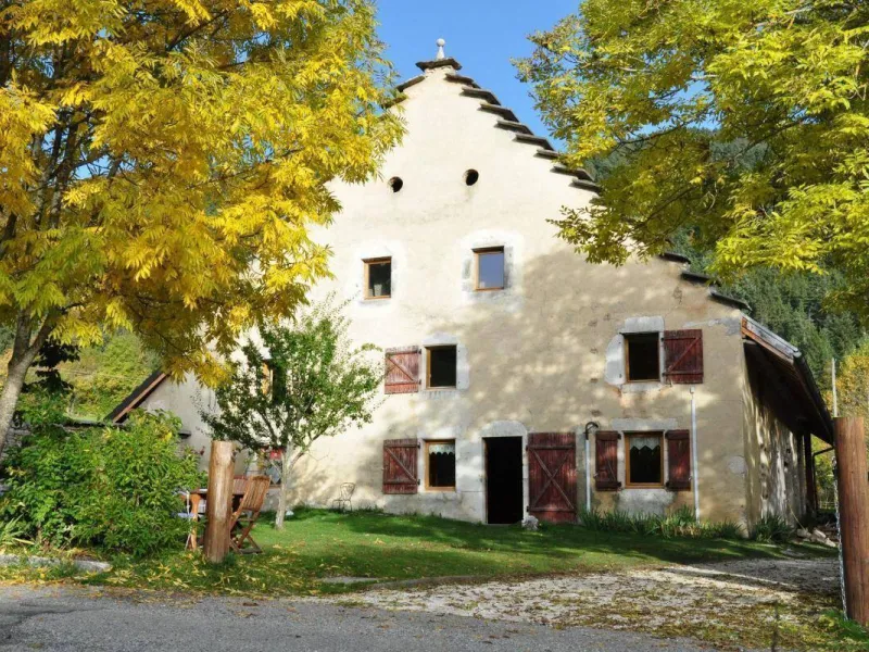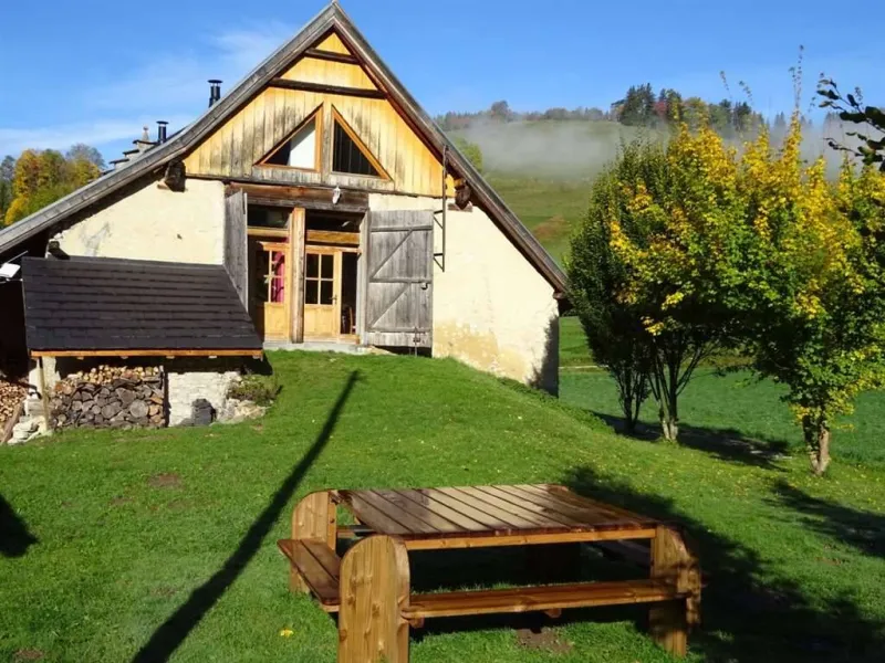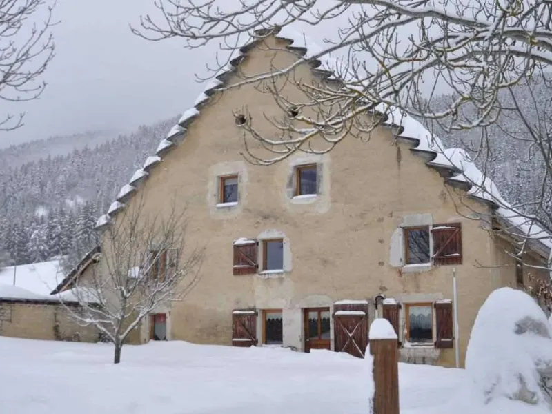Group gîte renovated in a former 18th century farm, using ecological materials. Located in Vercors Park, 3 km from Méaudre. Rentals without services for week or weekend. Overnight for rooms. Cooking using Vercors produce. Ground floor: dining room, lounge area, bdr. 1 (1 double), private washrooms suitable for reduced mobility use. 1st floor: lounge with wood burner, Bdr. 2 & Bdr. 3 with mezzanine (4 people, private bathrooms). Kitchen and lounge for guests' use, washroom-WC, bedroom-mezzanine (5 people). Library, TV and DVD player, washing machine, car parking, garden with garden furniture. Nearby: numerous outdoor summer and winter activities including skiing, snowshoe walking, hiking, mountain biking, golf, swimming poolsLocalisation