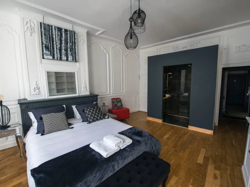 Suite Tourelle : 4/5 beds (1 double room with 1 single bed, 1 double room) with private bathroom and kitchenette.