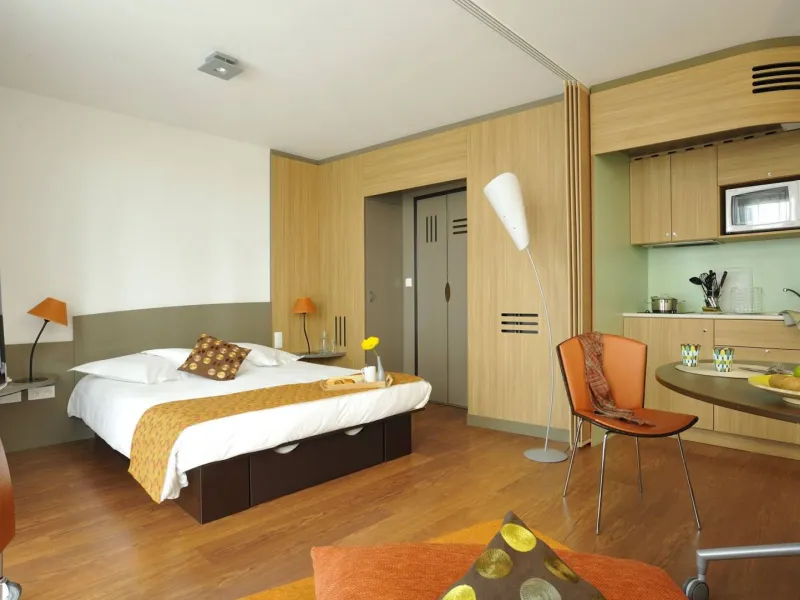 A tourist residence ideally located in the heart of the city, just a stone's throw from the Château des Ducs de Bretagne and facing the Ile de Nantes, 5 minutes' walk from the Cité Internationale des Congrès!120 Studios :