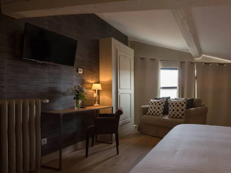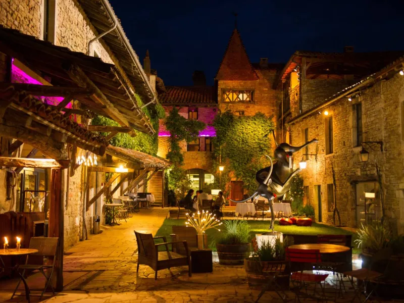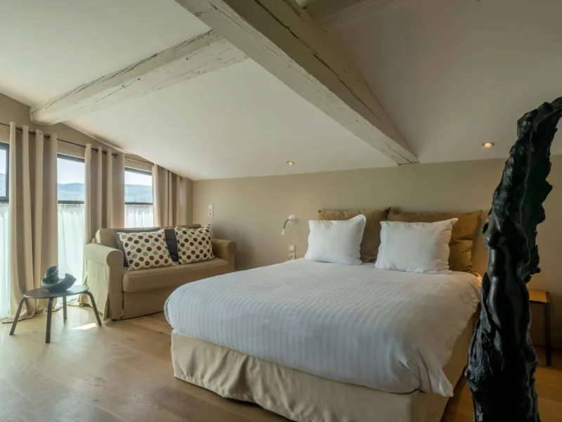 Located in the heart of Cluny, this charming hotel welcomes you to the historic town centre, offering top end accommodation and a uniquely charming atmosphere. The rooms and suites are spacious, with contemporary styled furnishings and decoration. The hotel boasts a location that offers a view over Cluny, and over the Mâcon and Beaujolais vineyards located close by. A buffet breakfast is served every morning in the Arquebuse breakfast room or in the garden. The restaurant serves French dishes and tapas, accompanied by grand cru Burgundy wines. With a lounge and terrace, the property is highly sought after and regularly welcomes exhibitions by contemporary artists; the ideal place for relaxation. The staff are available to ensure you enjoy a pleasant stay, with excellent service. The hotel also has a conference area and a secure car park. The Potin Gourmand Hotel is situated 20 minutes away from Mâcon Loché railway station and an hour from Lyon.Localisation