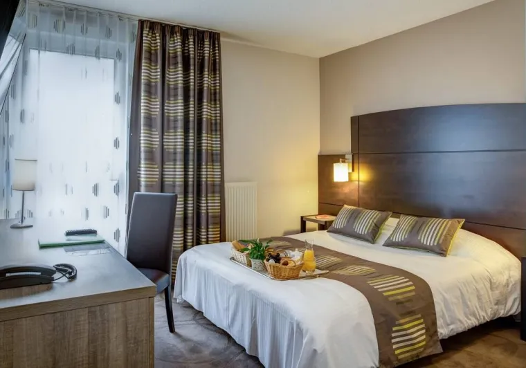 Welcome to the Brit Hotel Bristol Montbéliard Centre, ideally located in the heart of Montbéliard's historic district, in a peaceful pedestrian street close to the town hall, train station and Château Montbéliard Wurtemberg. The hotel has a secure car park (reservation required) for easy, convenient access.Open 24 hours a day, the hotel offers a warm and discreet welcome. Fully air-conditioned, the recently renovated rooms combine modern comfort with a warm atmosphere in a historic setting. Some rooms are accessed by a majestic staircase, allowing you to feel the charm of a 16th-century building.
