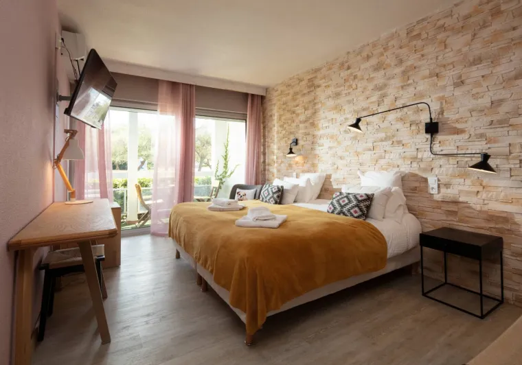 Located on the ViaRhôna, on the banks of the Canal du Rhône à Sète, the hotel features an outdoor swimming pool heated from March to November with panoramic views over the water, free parking and 26 air-conditioned, soundproofed rooms with free Wi-Fi. Our hotel offers a buffet breakfast featuring local and organic produce, served on a shaded terrace in fine weather. Free bike/motorcycle storage. Pets allowed on request. Hôtel Les Jardins du Canal is the ideal base for exploring the treasures of the region and enjoying a stay that combines comfort, authenticity and serenity.Localisation