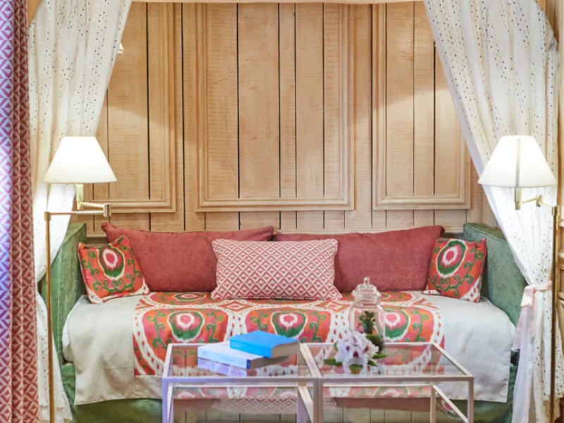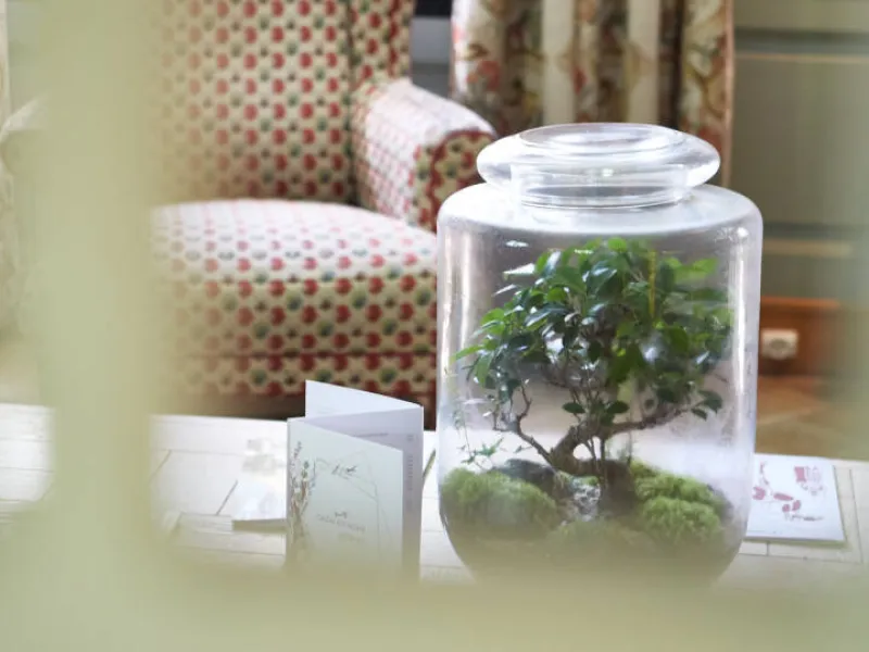 The 25 cosy rooms and 5 comfortable suites feature a subtle combination of ancient and contemporary objects, furnishings and paintings. Each room is decorated in a different style. (They look onto the forest or the park, and some have their own private terrace or balcony.)