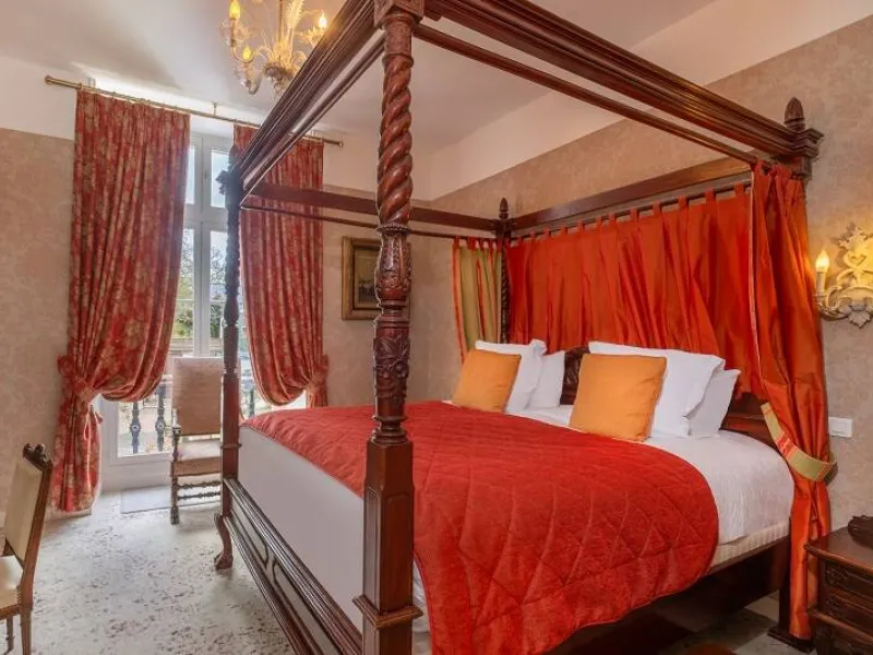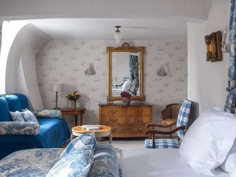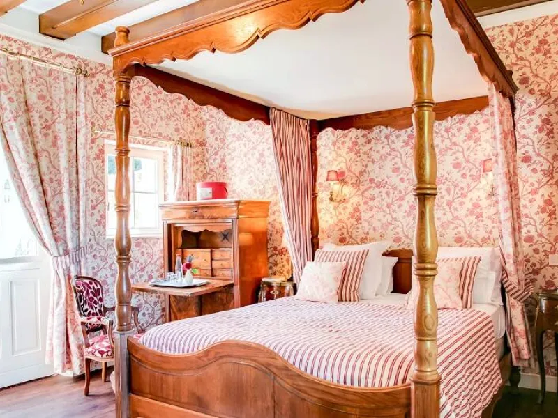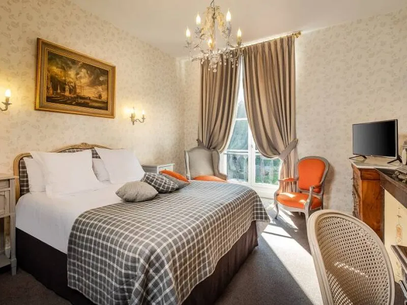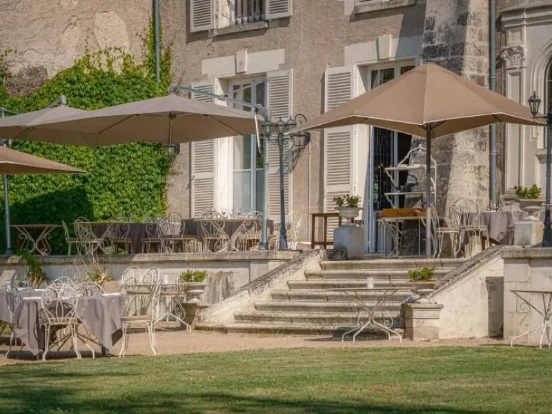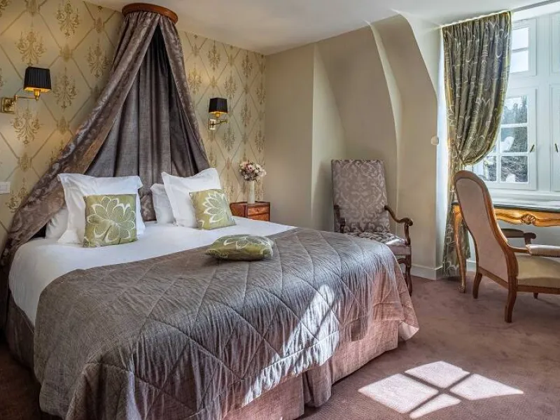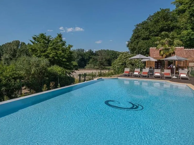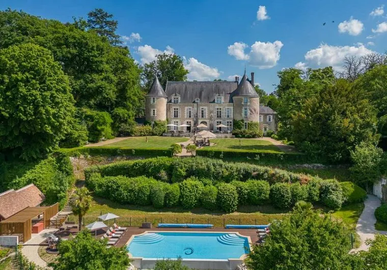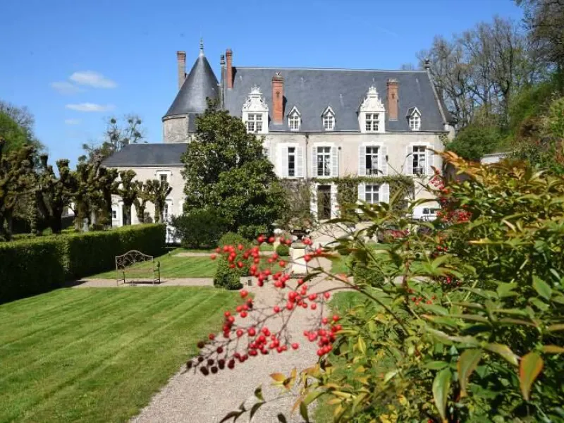 13th century château. Park, gardens, patio overlooking the Loire River. Heated swimming pool between the garden and vegetable patch. Orangery, restaurant, small Aubusson tapestry room, 16th century stained glass windows. Bedrooms with four-poster beds, marble and wood bathrooms. Mezzanine bedrooms in the Renaissance Pavilion building.Localisation