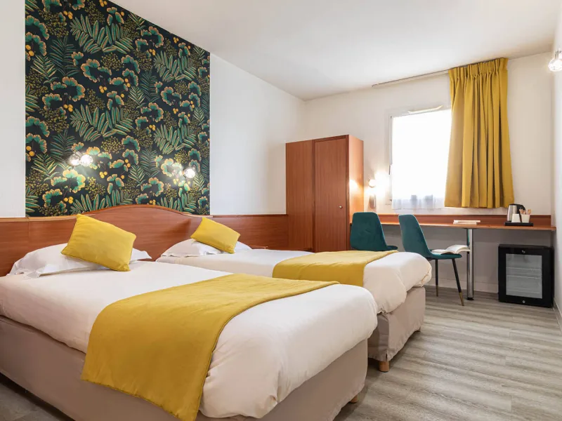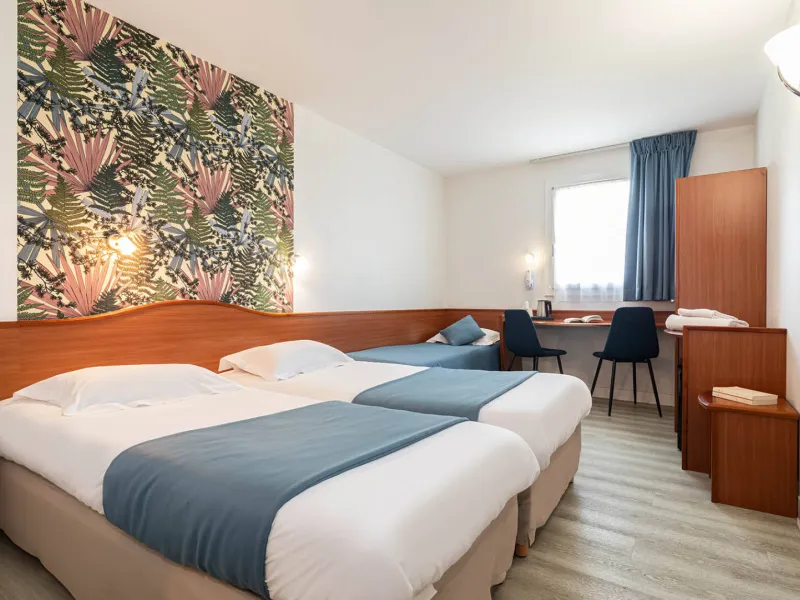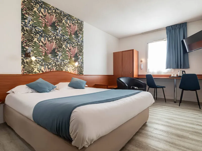 Nos 44 chambres tout confort de 1 à 3 personnes avec salle de bains privative sont équipées d'une climatisation d'un accès wifi gratuit, d'une Smart TV, d'un minibar, d'un bureau, plateau courtoisie et d' espace de rangement.Dans un environnement calme, vous disposez d'un grand parking privé et sécurisé. Nous sommes labellisé Accueil Vélo, Tourisme & Handicap (4 déficiences), Respirando et sommes également un Relais Motards. Vous pourrez profiter de tous nos services tels que notre abri moto, un local à vélos fermé, des bornes électriques rechargeables (pour voitures et vélos), le petit-déjeuner type buffet continental avec des produits locaux de la Ferme Ponote et d'autres producteurs altiligériens, la demi-pension en partenariat avec notre traiteur local Saveurs d'Antan,