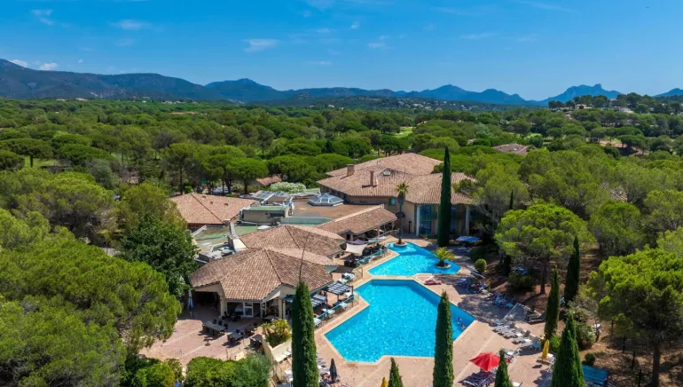 In a quiet, green setting just 10 minutes from the beach, you can soak up the sun on your own terrace or balcony, overlooking the pine forest. For your well-being, the rooms were renovated in 2021 and are all air-conditioned in summer. The hotel has 2 outdoor pools, one of which is heated from April to October, and enjoy our new 250m² Garrigae SPA by Cinq Mondes with hammam, sauna, experience pool and relaxation area with herbal tea room. Our treatment menu, inspired by rituals from around the world, is available on reservation. Outside, enjoy our tennis court, large bowling green and shady pine forest. The 18-hole Estérel golf course was renovated in 2025. 6 km from the town center and the sea, in the residential Valescure district on the heights of Saint-Raphaël, relax and enjoy the many advantages of the Côte d'Azur. Our 89 rooms (22 m2) and 6 suites (32 m2) all feature a terrace or balcony.