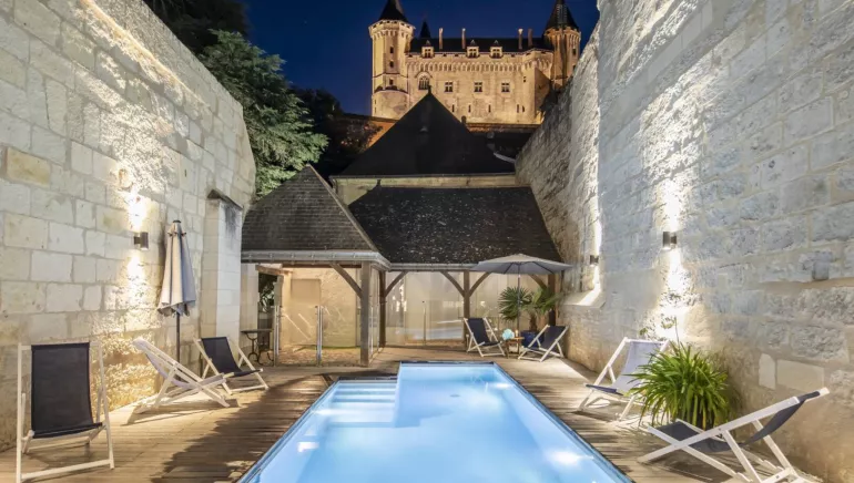 The hotel is housed in a former 18th-century town house and has 41 individually decorated rooms. Some rooms overlook the Loire or the château.