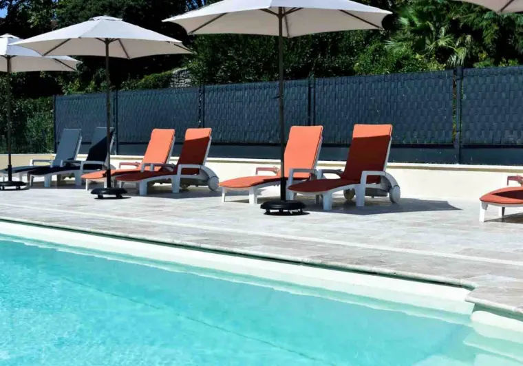 The park, planted with trees and flowers, offers a range of activities: swimming pool, mini-golf, giant chess, pétanque, table tennis, badminton, etc. The 20 x 7m swimming pool is heated between mid-May and September. Garden lounges and deckchairs scattered around the grounds provide pleasant places to relax.