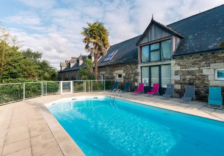 3-star Hotel in a 17th century Breton farmhouse. Logis recommends this hotel for its green and quiet setting, ideal for (mountain-) bikers and as a stop-over on a trip through Brittany. 16 cosy rooms with personalised decoration, including a family room, a relaxation and reading room, an outdoor swimming pool, open and heated from May to September, a garden with trees and free private parking. Gourmet dinner on reservation the day before. Member of the "Route des Saveurs (gourmet route)“ network. Possibility to receive packed lunches / picnics. Non-smoking establishment.Localisation