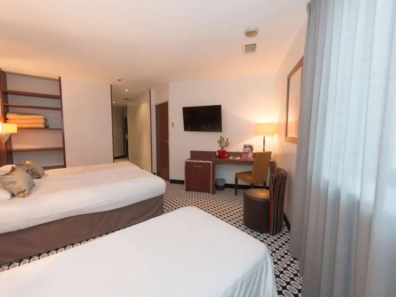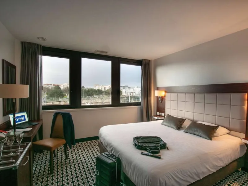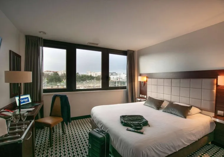 The Kyriad Limoges Centre Gare hotel, located close to the city center and at the foot of the Benedictine railway station, welcomes you in a sober and warm environment.It has 70 air-conditioned rooms spread over 3 floors, served by 2 elevators. The hotel also has a private underground parking lot for which a charge is made. Superior rooms can accommodate up to 5 people.