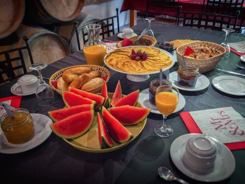 Breakfast is served in the old wine-press room, or even in barrels, and is made with fresh, home-made products or products selected for their quality.