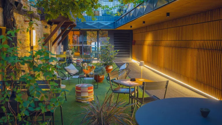 Carefully designed 16 rooms, each with a different ambience, and attractive communal areas: lounge with billiards table, bar and terrace in the inner courtyard.