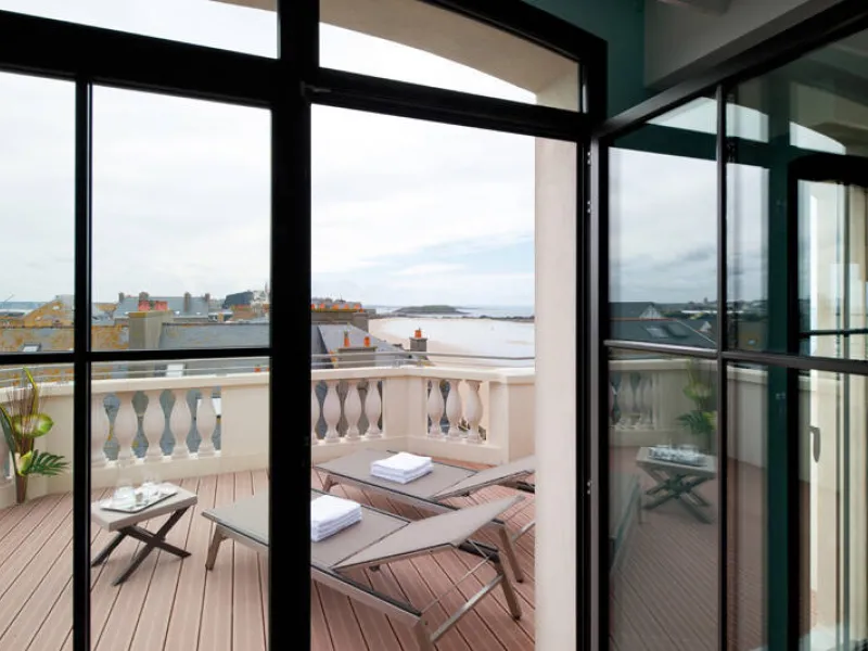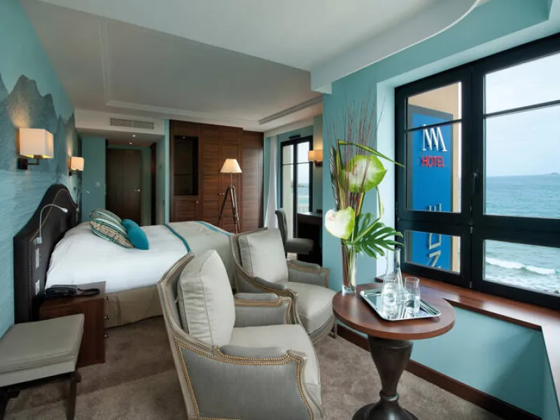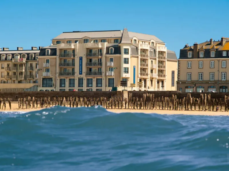 The Hotel & Spa Le Nouveau Monde is a stylish, modern, 4-star hotel on Le Sillon beach overlooking the Bay of Saint-Malo, a short distance from the walled town and close to the Centre des Congrès Conference Centre. The hotel, whose décor is a reinterpretation of naval history and discovery, is a perfect place for a holiday or business events and seminars. Facilities include a swimming pool, hot-tub, hammam, restaurant and a bar with sea views. The hotel is right by the Centre de Thalassothérapie & Spa des Thermes Marins and Le Sillon beach with water sports. Saint-Malo golf course is 25 minutes. Also 8 conference rooms with a total surface area of 250m², which can be made larger or smaller, with natural light and hi-tech equipment.Localisation