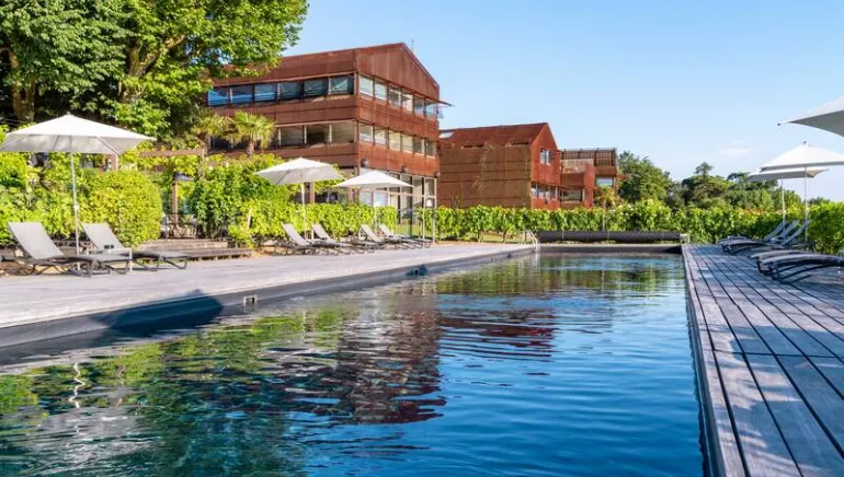 Refined, uncluttered and ultra-contemporary, the rooms have retained their spirit and their proximity to nature, a concept and experience that gives the impression of living in the middle of the vineyards. You can enjoy an outdoor swimming pool heated six months out of twelve as well as two restaurants and a cooking school.