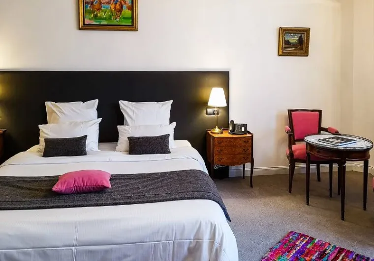 Charming hotel-restaurant, situated in the heart of Amboise town centre, with a view of the château; private terrace. In a town house with modern décor and key features from the Château de Chanteloup (chimneys). Gastronomic restaurant, modern and sophisticated cuisine. Park and garden.Localisation