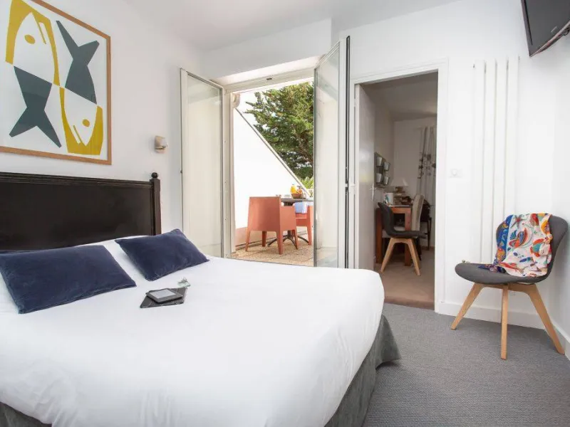 In the heart of a listed natural site, enjoy a peaceful and invigorating stay in our cosy, individually decorated rooms, all facing the ocean and Penfoulic cove. Carefully prepared, imaginative cuisine: restaurant listed in gastronomic guides. Charging station for electric cars.Localisation