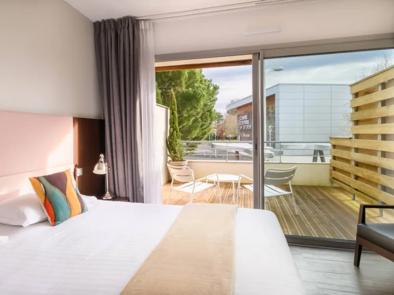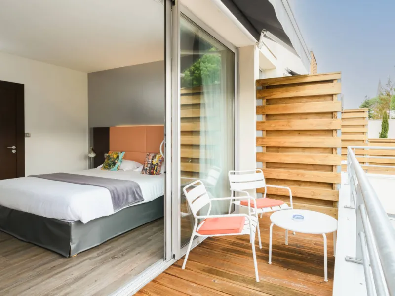 A new, modern construction in the city centre for this three-star hotel with a contemporary design and clean lines. We have 14 light, air-conditioned rooms, two of them junior suites with chic, welcoming decor. Quality service, constant attention to detail, conviviality and a personalised welcome in a relaxed atmosphere. A private car park is locked and reserved for our clientele. Pleasant terrace, lakes, ocean, forest and cycle path close by; ‘When sleeping is not enough’.Localisation