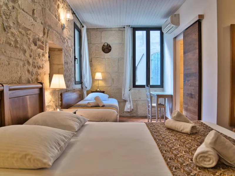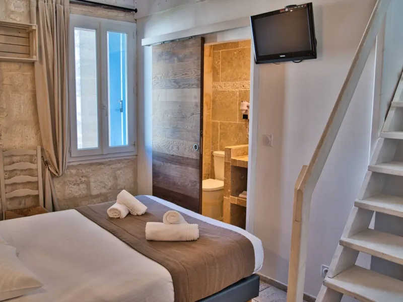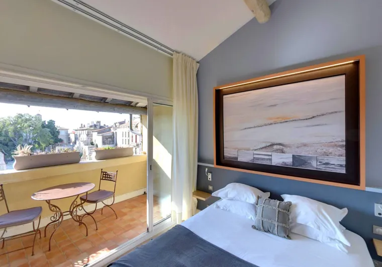 On a quiet little square shaded by a superb olive tree, between the Place du Forum and the Arènes, in the heart of downtown Arles, discover Hôtel La Muette. Throughout your stay, you'll enjoy an exceptional location, close to the train station, talented small-scale creators and restaurateurs offering dishes bursting with flavor. Your hosts and La Muette offer a warm welcome in a friendly, family atmosphere, so you'll feel right at home! In this charming 18-room hotel, everything has been designed to make your family vacations, romantic weekends, business stopovers, solo road-trips and get-togethers with friends as comfortable and enjoyable as possible. Let yourself be enchanted by the hotel's labyrinthine layout, and the refinement and charm of its decor, which perfectly combines antique furniture, exposed beams, old stonework and modern amenities.Localisation