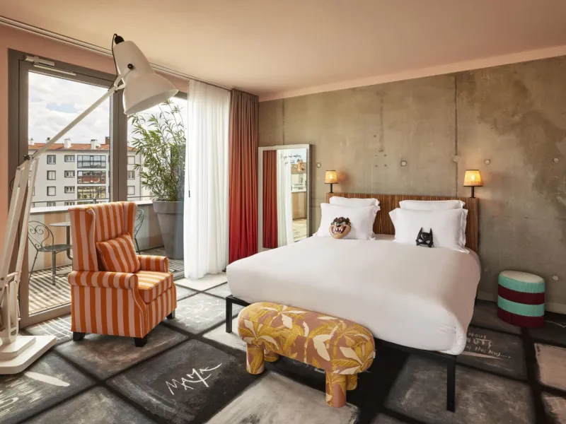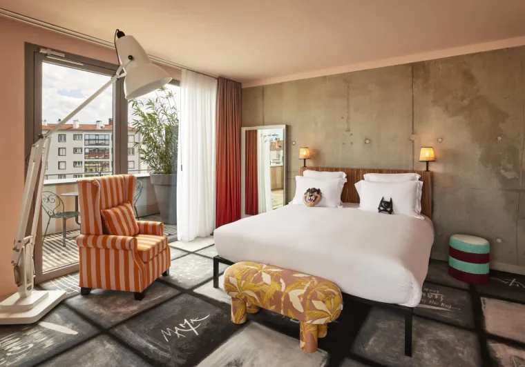 In the heart of Jean Macé, 3 metro stops away from the Part-Dieu train station and 5 minutes from the city centre, Mama Shelter has 156 rooms, 6 meeting rooms for up to 120 people, a bar and a restaurant with a terrace open 7 days a week. Concierge present 24 hours a day. Activities every Thursday, Friday and Saturday night.The Mama Shelter was awarded the Green Key certification.