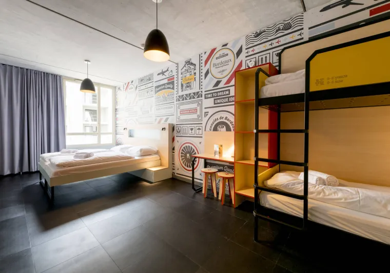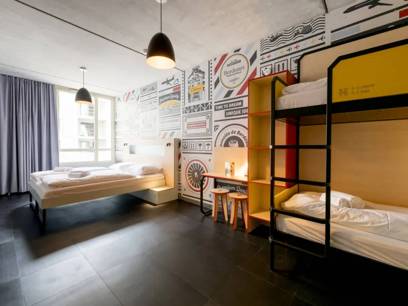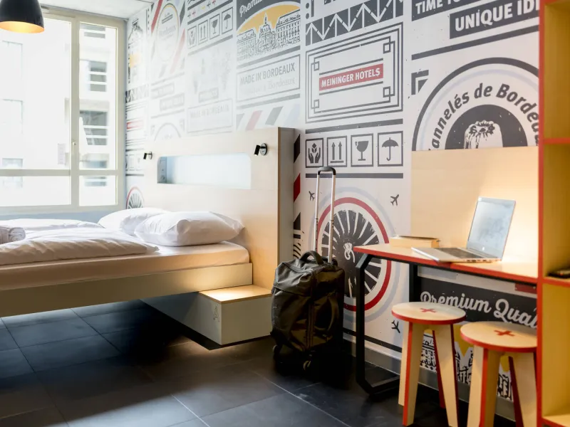 MEININGER hotel Bordeaux Gare Saint Jean is the ideal option for groups and individuals in Bordeaux, whether you're travelling with work, with a school, or planning to come enjoy this beautiful city with friends or family.Located in the former red district, near the quays, the Saint Jean district is today a lively cultural centre, that is not short of bars, restaurants, bistros and clubs. The city's main transport hub, Saint Jean Train Station is a mere 5-minute walk away. The hotel is a stone's throw from La Méca, La Halle Boca and Quai de Paludate. Bordeaux city centre and the old town can be reached with a 15 minute walk or a short tram ride from the train station.