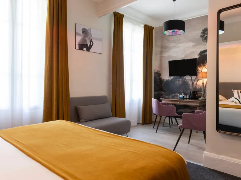 Entre charme et confort, l’hôtel Les Nations met à votre disposition 61 chambres climatisées dont 3 chambres "Privilèges", un studio et 1 chambre familiale, toutes décorées dans un style moderne et chaleureux.