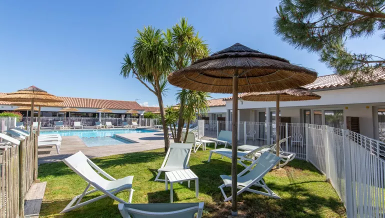 Enjoy a friendly stay at Hôtel de Ré***, The Originals Residence, a single-storey, eco-friendly hotel-residence on the south of the Ile de Ré: 10 rooms and 22 apartments around a heated swimming pool and a lovely garden with playground.