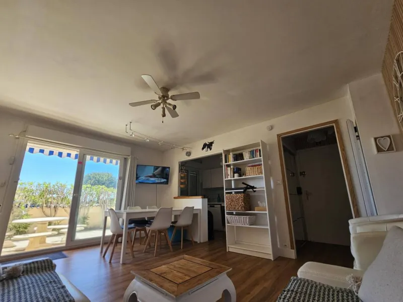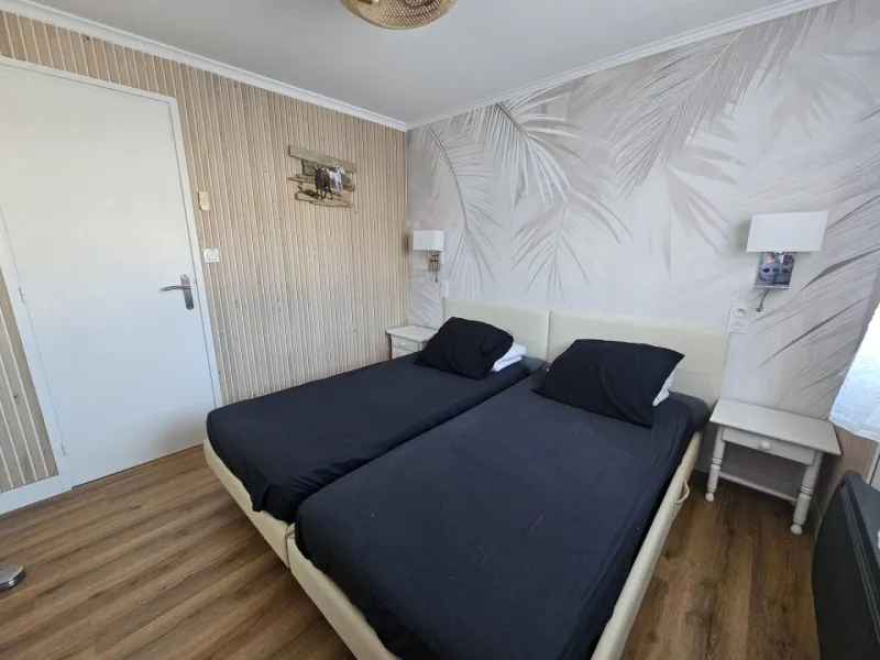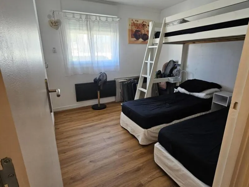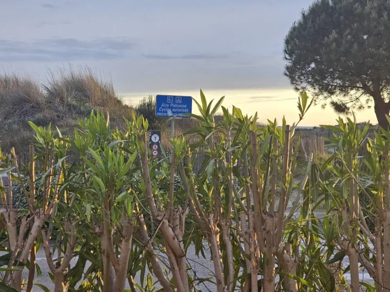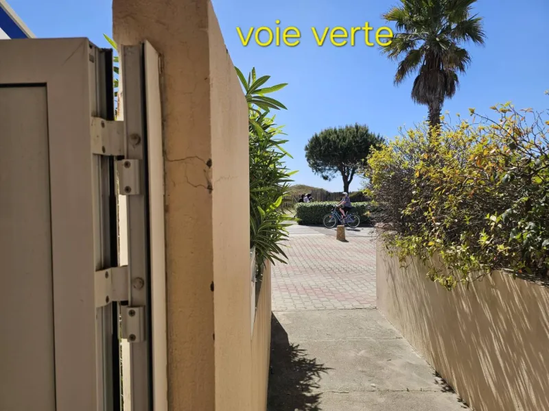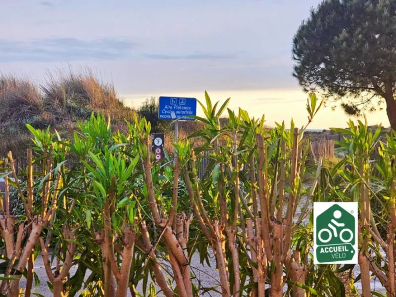 parking privé, en 1ère ligne à 10 mètres de la plage, à côté de la voie verte, 2 chambres, 5 personnes, cuisine équipée, salle d'eau avec douche et wc séparés, grande terrasse (30 m2) sans vis à vis, parc à vélos. Idéal pour famille ou 2 couples + 1 enfant.Posez votre voiture ou vos vélos et déplacez-vous à pied : à 400 mètres, pharmacie, poste, supérette, cinéma, restaurants.
