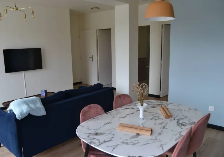 Cet appartement a été rénové au printemps 2021 et a été agencé par Hélène Bastiand (décoratrice d’intérieur) dont l’objectif était de vous transporter dans un intérieur plein de douceur et de chaleur.Localisation
