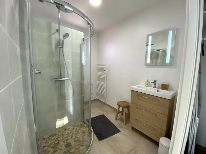Katia and Olivier welcome you to a Rochefort-style shop that has been completely renovated on the basis of an old delicatessen. This single-storey property will allow you to relax in a quiet enclosed space. It comprises 2 private master bedrooms, each with en suite bathroom and WC, and a living room with open-plan kitchen and lounge. A magnificent enclosed garden with deckchairs for relaxing.Interessiert Sie diese Einrichtung? Besuchen Sie deren Website zum Buchen oder für mehr Informationen.