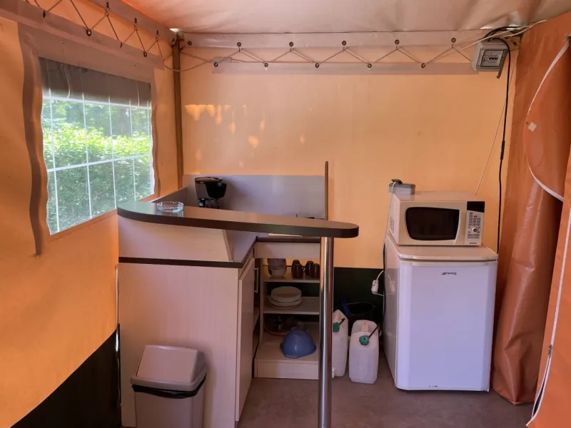 Pleasant campsite close the river.1 canvas bungalow 4 people and 4 wooden barrels equipped and comfortable. Ideal short stay, for families.