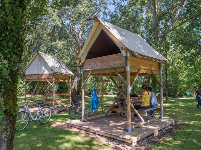Welcome to Dany and Natacha! Here, a warm welcome and a smile are a family affair. After a day's hiking, cycling, kayaking or horse-riding.... enjoy comfortable accommodation close to nature: the bivouac hut!On a shady pitch, you'll probably fall in love with these two bivouac tents on stilts. Each has a shelter with a table and benches on the ground floor and a comfortable sleeping area for two people upstairs. Ideal for holidaymakers who don't want to bother with a tent.
