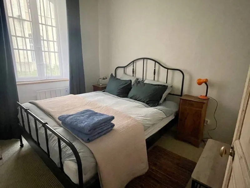 On the second floor, there is a large flat of 30 m2 with a breathtaking view of the Loire bridge and exposed beams. Small bedroom overlooking the quiet courtyard, bathroom plus separate toilet, kitchenette equipped with hob, microwave, toaster, kettle, etc. By using the sofa bed, this flat can accommodate up to 4 people.