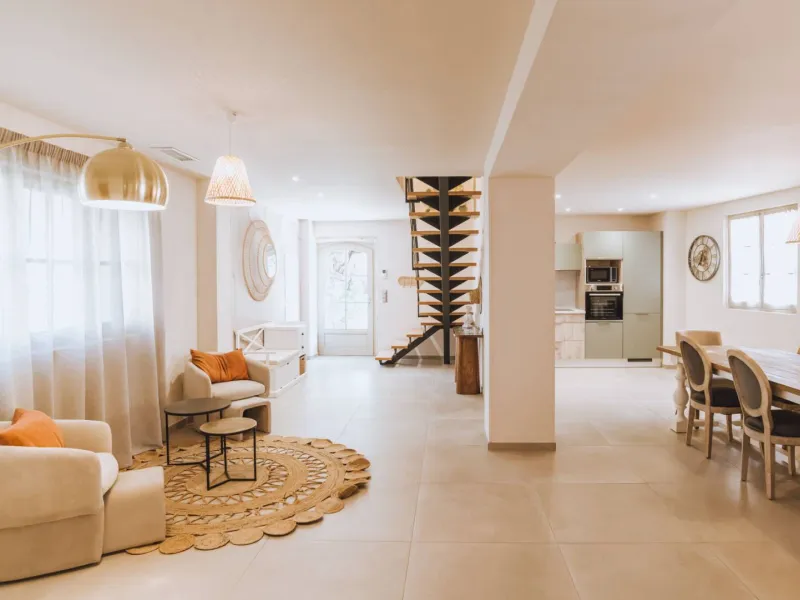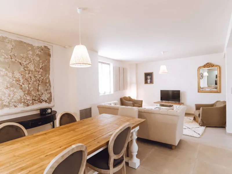 For 2 to 6 people, 138 m² house with private spa, spacious 66 m² living room, three bedrooms upstairs, 100 m² garden with direct access to the castle courtyard (ground floor).Localisation