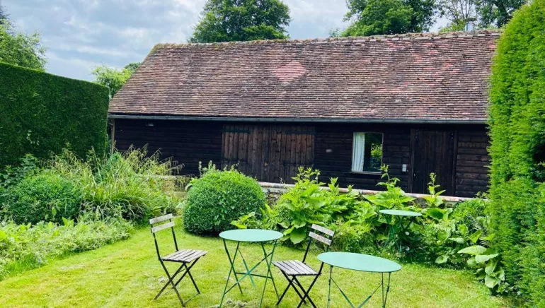 In the Bray region, 1 hour from Paris on the A16 motorway, exit 14; enjoy nature in the heart of the Domaine du Colombier's 4-hectare park. Discover this all-wooden cottage with its wood-burning stove and medieval-inspired garden for your family's peace and privacy.