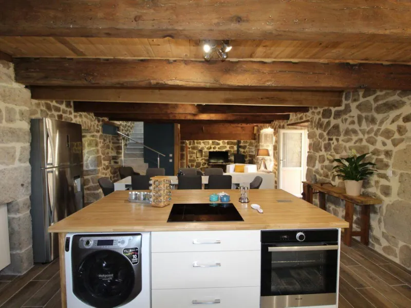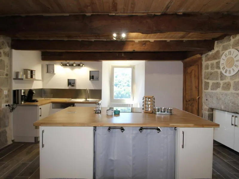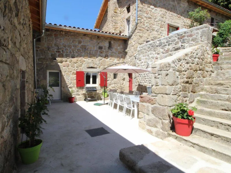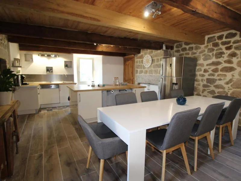 Vous serez charmés par la grande salle à manger où trône encore l'ancienne cheminée de la maison. Coin cuisine intégré entièrement équipée, coin salon avec canapé, fauteuils, poêle à granulés, TV écran plat, connexion internet, 1 chambre (1 lit 180), salle d'eau et WC. A l'étage, 1 petite chambre "coin nuit" pour enfants (2 lits 90 superposés), 1 chambre (1 lit 160, 2 lits 90 superposés), 1 chambre (1 lit 160), salle d'eau, WC indépendant. Cour intérieure avec salon de jardin et barbecue. Les Ollières et "Eyrium" (base aquatique) à 10 minutes, Vernoux en Vivarais à 20 minutes.Localisation