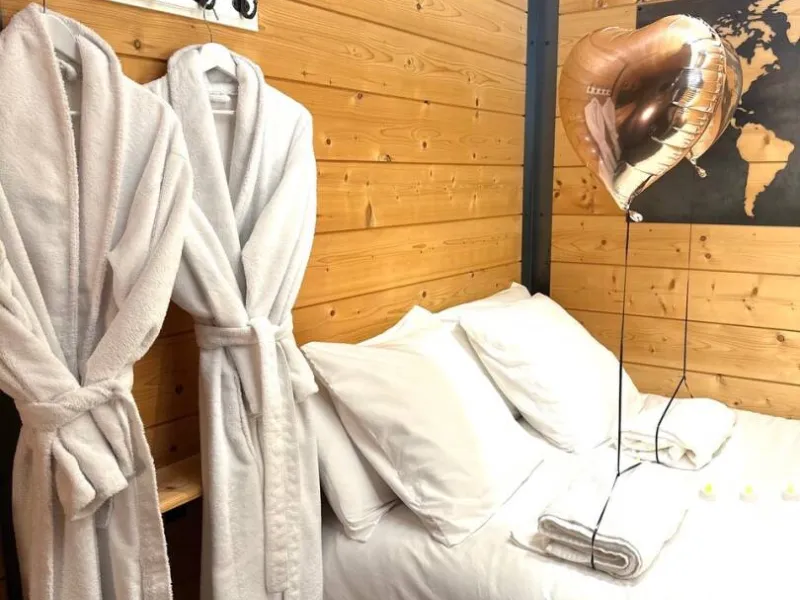 La Cabane Spa - A cocoon of well-being in the heart of natureLocated in the heart of the Domaine du Moulin, this top-of-the-range cabin is ideal for a relaxing getaway for two. Enjoy a private Nordic bath heated to between 35 and 40°C, set on an intimate covered terrace.