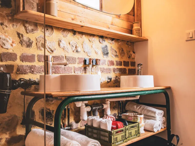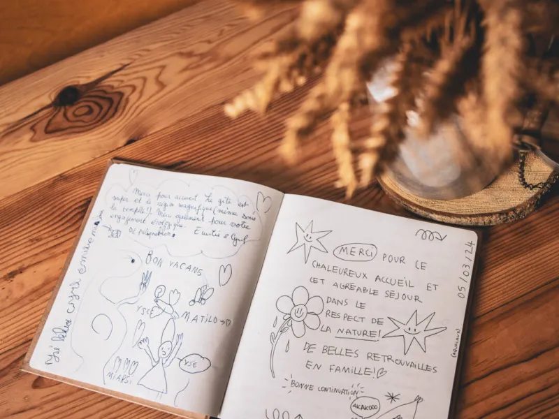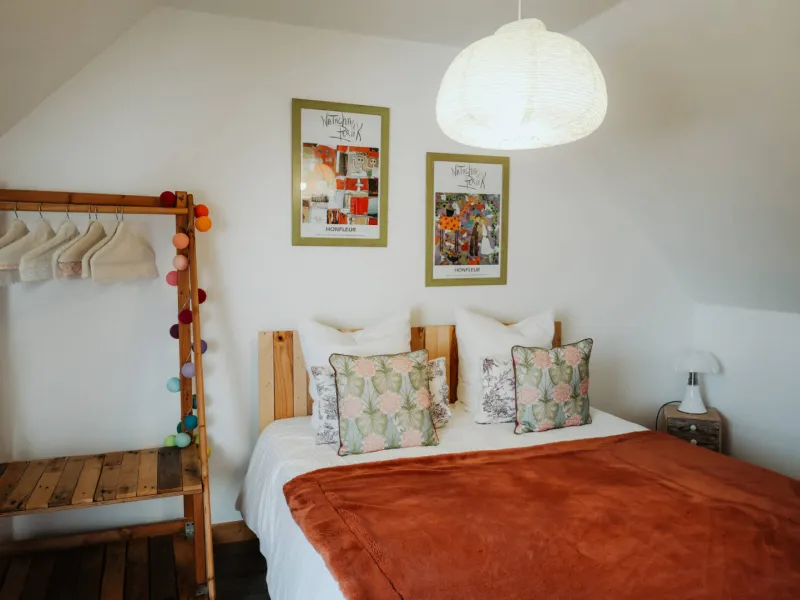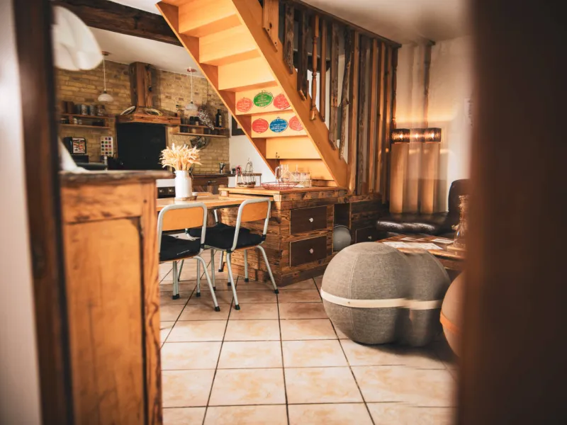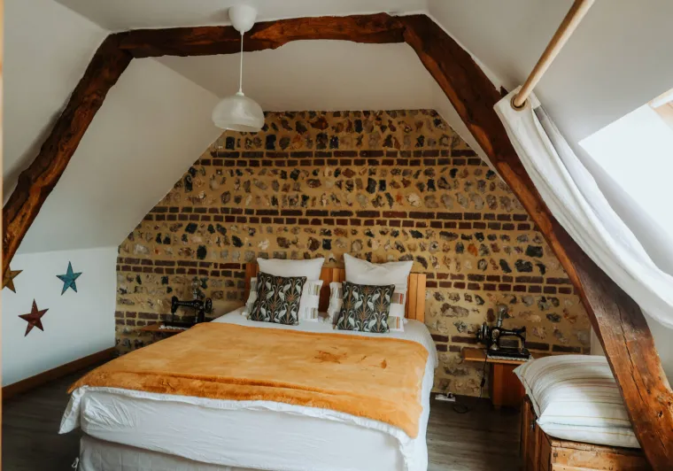 The Pomme de Paille gîte has two bedrooms for two people upstairs.We welcome you to our property in a warm and family atmosphere.