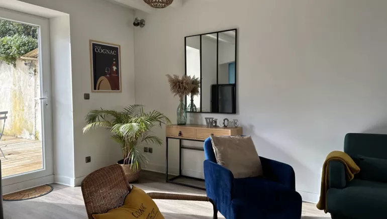 The entrance to the gite is via a patio where you can relax. It is composed of a living room with a sitting area and kitchen, and a dining area for 6 people. The sleeping area has a large bedroom with a view of the garden. You also have the benefit of a private and enclosed garden.