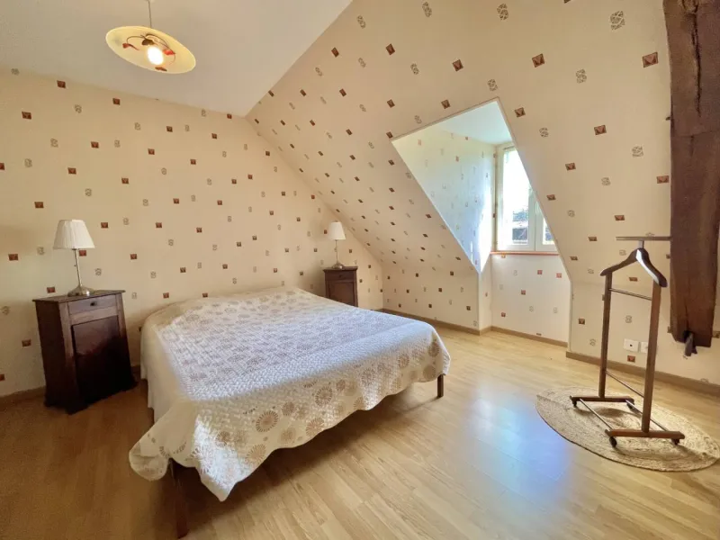 Étage : 1 chambre (1 lit 160), 1 chambre (2 lits de 90), mezzanine avec coin détente (canapé 2 pers), salle d'eau (douche), wc indépendant.