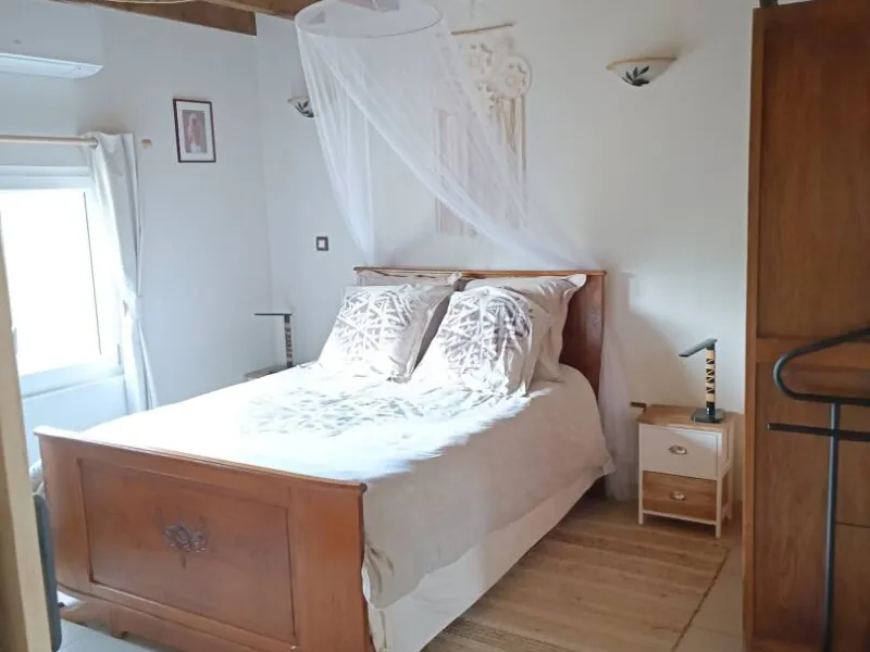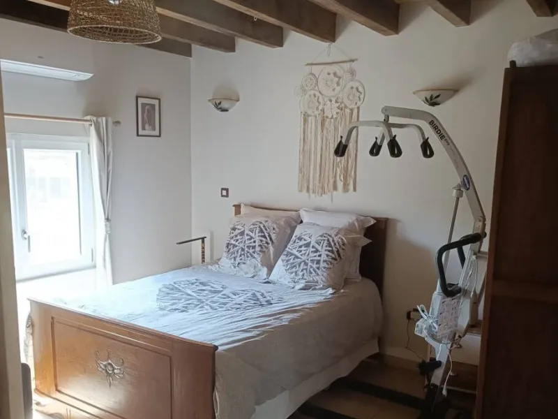 * La chambre parentale offre un couchage double (en 140) surélevé, accessible PMR et aux fauteuils roulants.