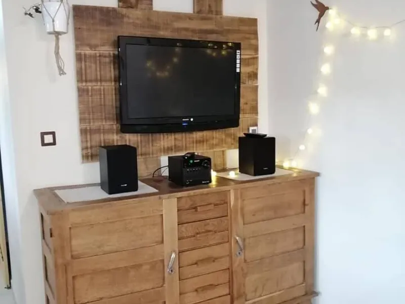 * Le canapé gigogne dans le salon propose deux couchages : deux lits simples avec véritable literie (2×90).