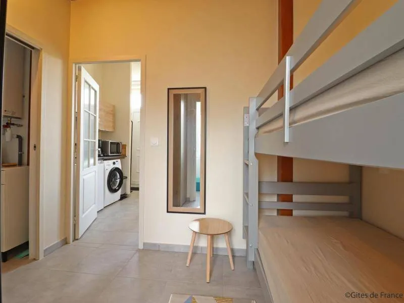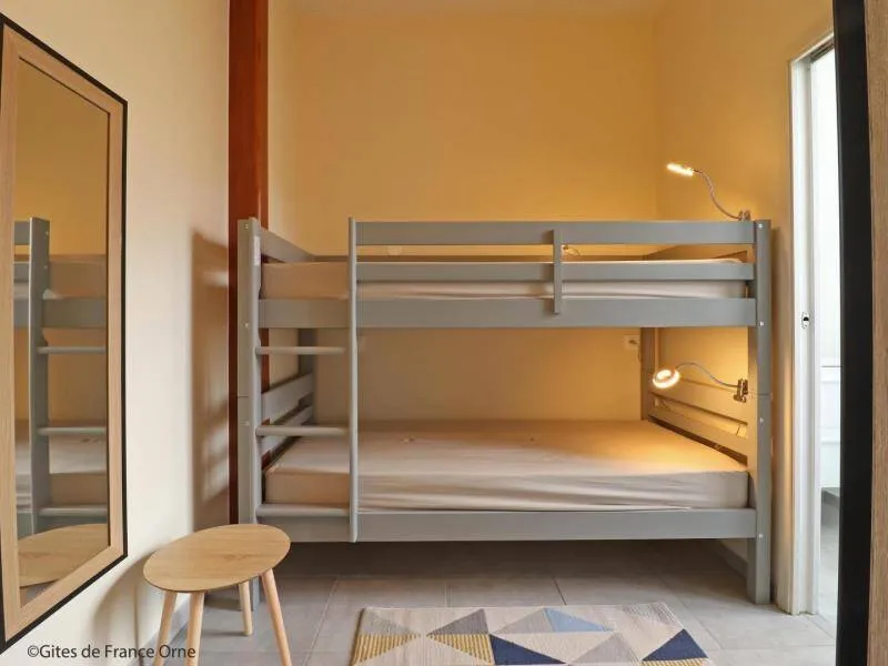 Ideal for hikers, on foot or by bike, this communal cottage is located just 800 meters from the Véloscénie linking Paris to Mont St Michel. A key box will allow you to arrive at any time.Studio/cabin with kitchenette (combined microwave oven, freezer box) and sofa bed for 2 people. Adjoining 7 m² sleeping area without opening with 2 single bunk beds with sheets and duvets provided. Adjoining bathroom and separate wc. Enclosed courtyard with local bicycles.