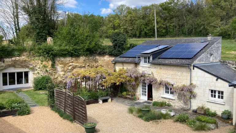 Christophe will show you round the interior of this detached house built of tufa stone and completely renovated in 2015. The setting is calm, full of flowers and authentic. As an extension of the house and terrace, you can stay in the recently renovated troglodyte: no need for air conditioning here!
